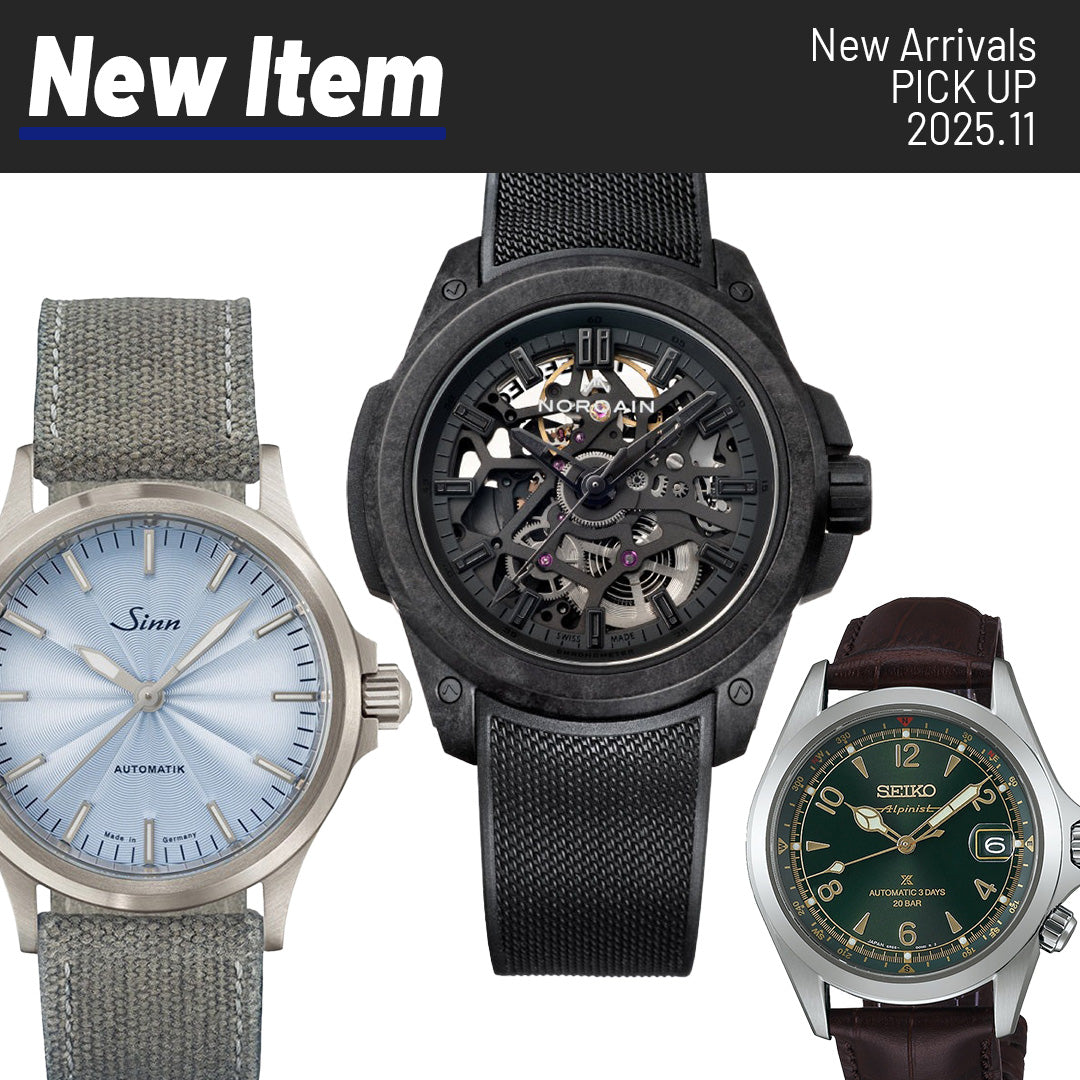 まるちゃん@時計の通販 2025年11月発売の新作腕時計を、スリーク入荷情報からピックアップしてご紹介します。ご予約・ご購入希望の方はお問い合わせフォームや店頭にてお気軽にご相談ください。※紹介モデルは予約段階ですでに完売している場合もございます。あらかじめご了承ください。 目次 1. ノルケイン 11月新作モデル 2. シチズン 11月新作モデル 3. セイコー 11月新作モデル 4. カシオ 11月新作モデル 5. オメガ 11月新作モデル 6. ジン 11月新作モデル ノルケイン 11月新作モデル 【NORQAIN / ノルケイン】スリーク別注 30本限定 インディペンデンス ワイルドワン スケルトン...