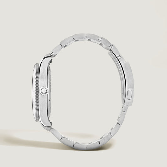 ダイビングの冒険心とモンブラン山塊の最大の氷河「メール・ド・グラース」の雄大な美にインスパイアされたタイムピース コレクション。さまざまな光と自然条件の下で絶え間なく変化する氷の色合いを表現した、多彩な色調の独創的なダイヤルが特徴です。繊細な彫刻が施されたケースバックが組み合わせられており、極めて優美な氷河の景色を手首へとお届します。