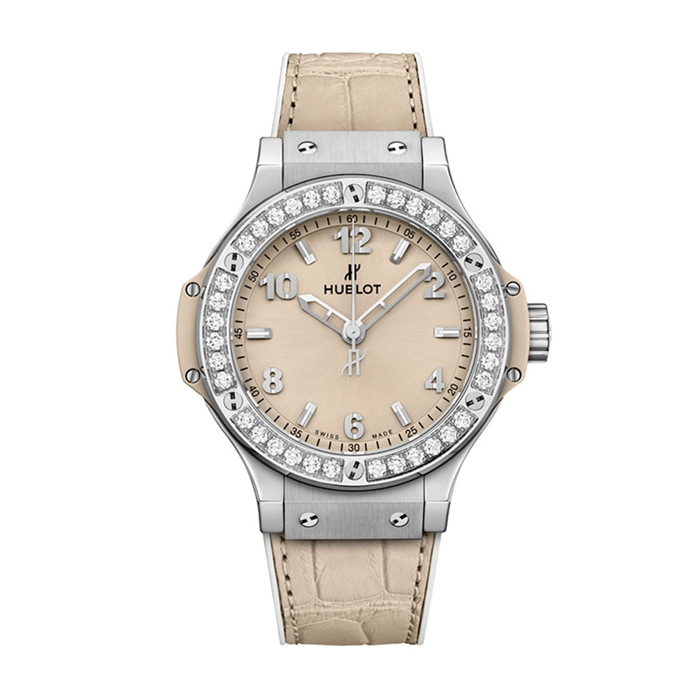 ポリッシュ仕上げのステンレススチール、36個のダイヤモンド(約1.3カラット) |
