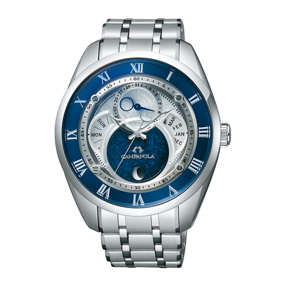 充電警告機能 / 過充電防止機能 / クイックスタート機能 / フル充電時約6ヶ月可動 / トリプルカレンダー(曜日、月、針による日表示) / 日付早修正機能 / ムーンフェイズ機能 |