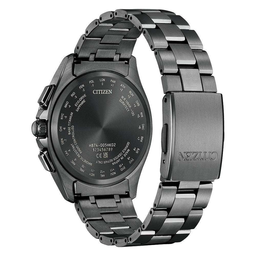 チタニウムにデュラテクト(表面硬化技術)を施したシチズン独自の素材『スーパーチタニウム』。ステンレスに比べて40%軽く、5倍以上の表面硬度を実現しています。