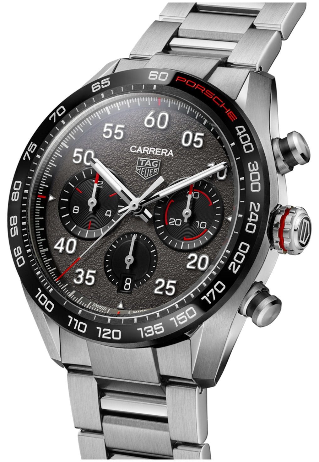 時, 分, 秒, クロノグラフ:1/4秒計、30分計、12時間計, 日付 |