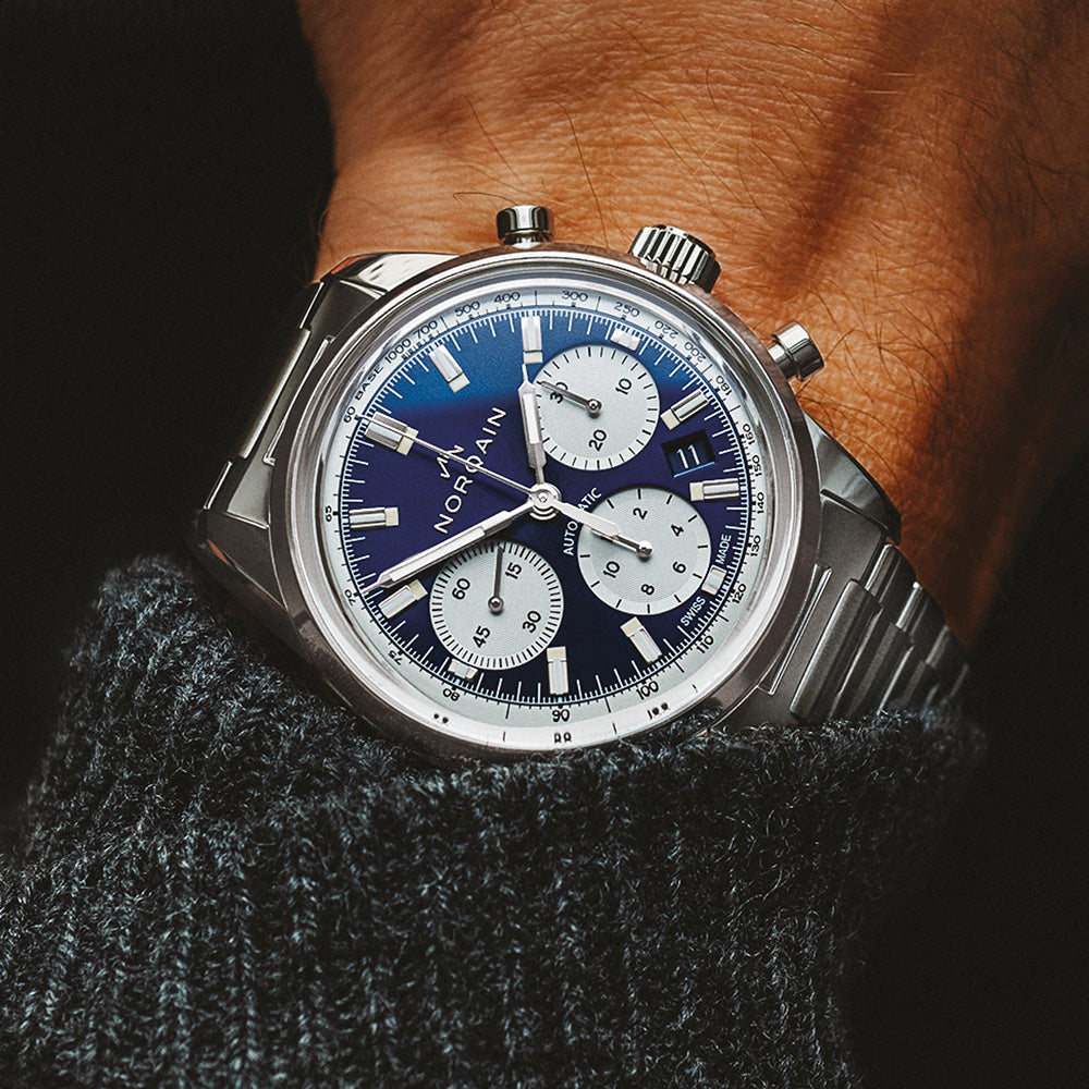 ドーム型サンレイ仕上げのロイヤルブルーダイヤル |