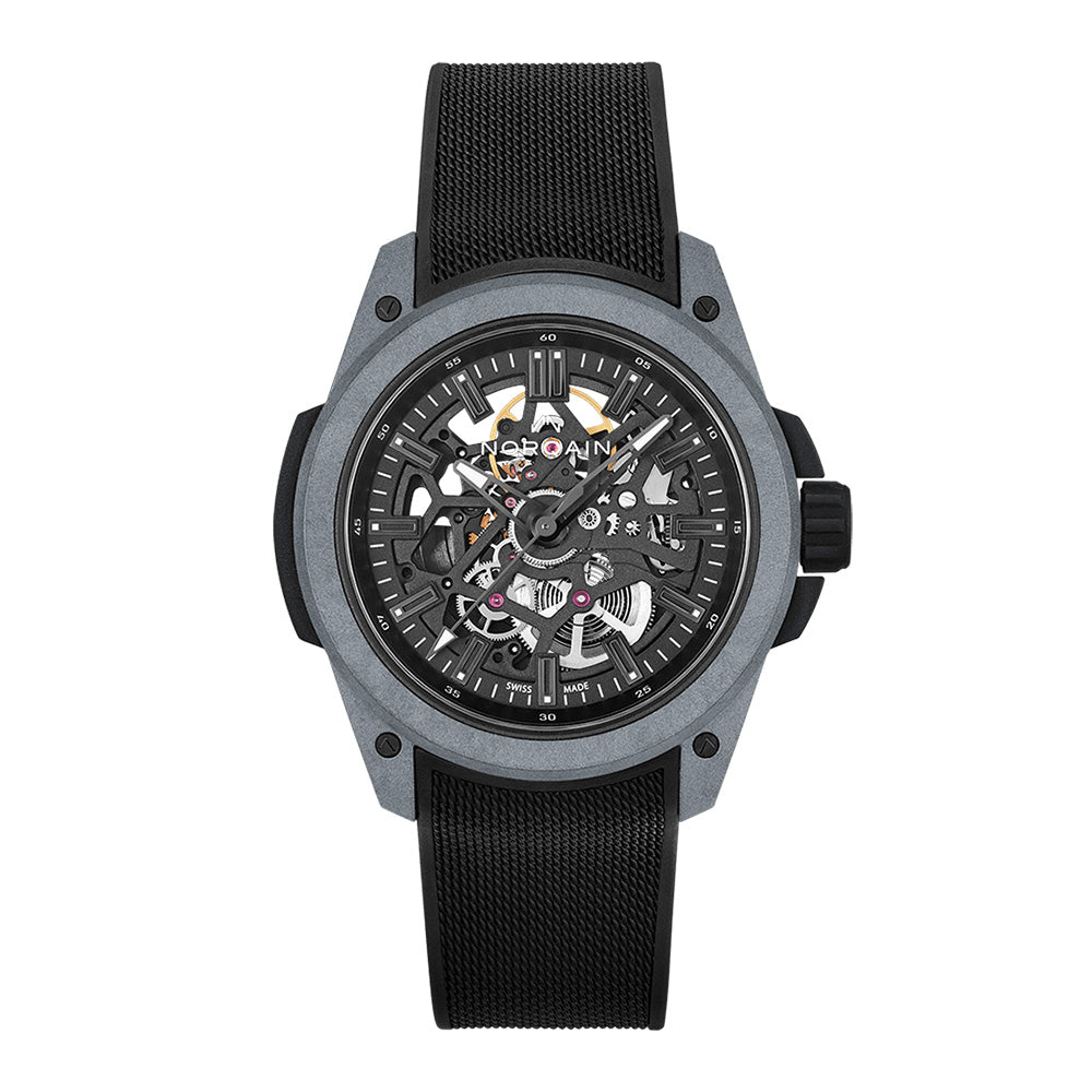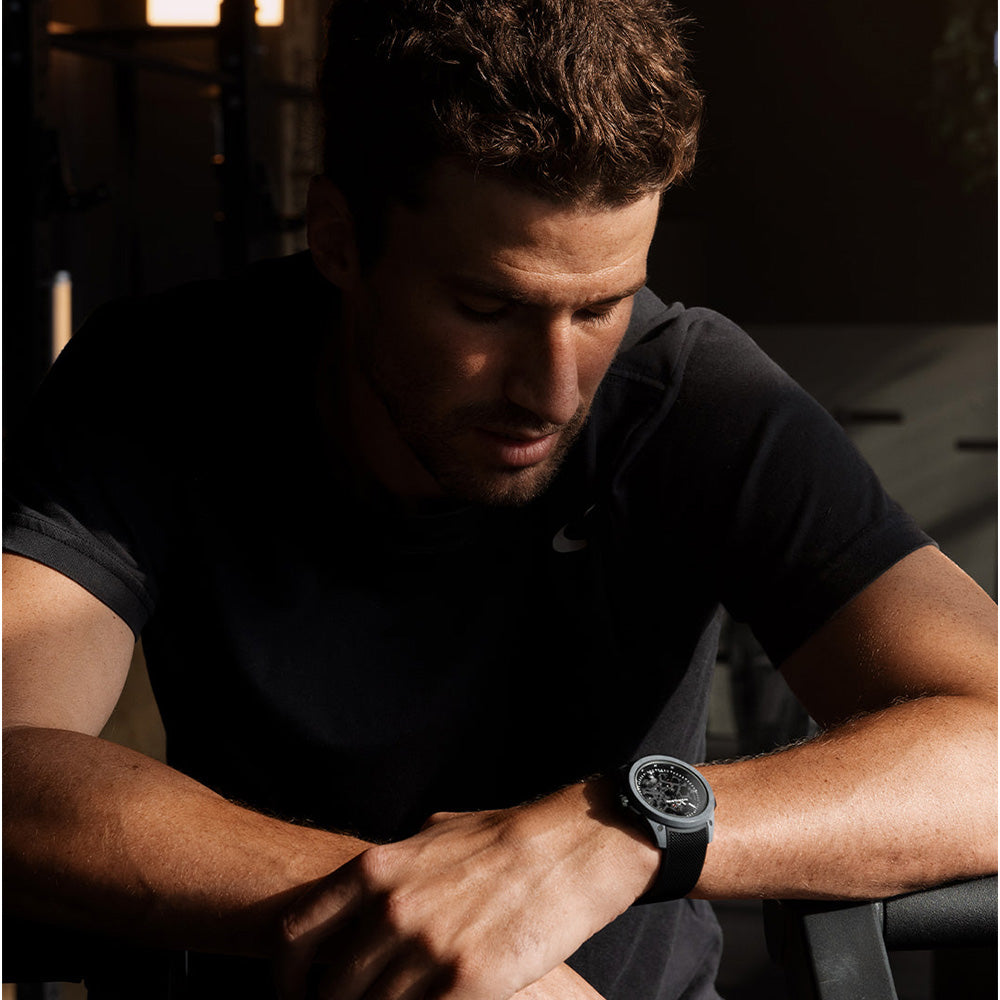 ミラネーゼパターンの施されたブラックラバーストラップ |