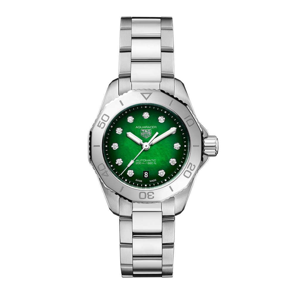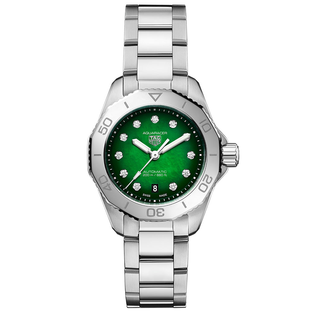 仕上げ スモーク加工 カラー グリーン & ホワイト インデックス アプライド ダイヤルのダイヤモンドのカラット数 0.107 ダイヤルのダイヤモンドの数 11 |